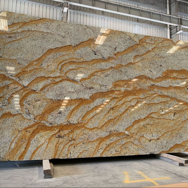 O granito Angelina Gold é uma pedra natural de alta qualidade, extraída no Brasil. Ele possui uma cor dourada com veios pretos e brancos, que dão um toque de elegância e sofisticação ao ambiente.